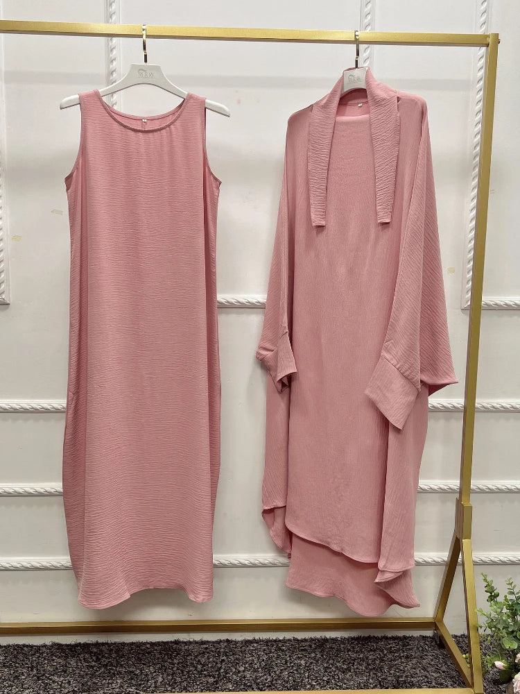 Ramadan 2 Piece Long Khimar Set Abaya Muslim Women Prayer Dress Sets Eid Niqab