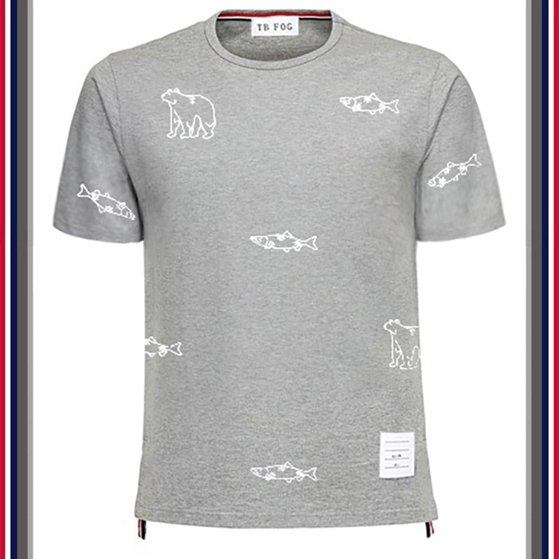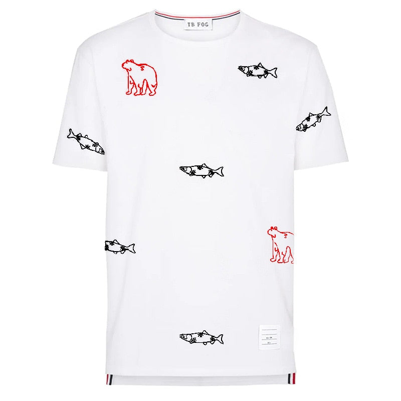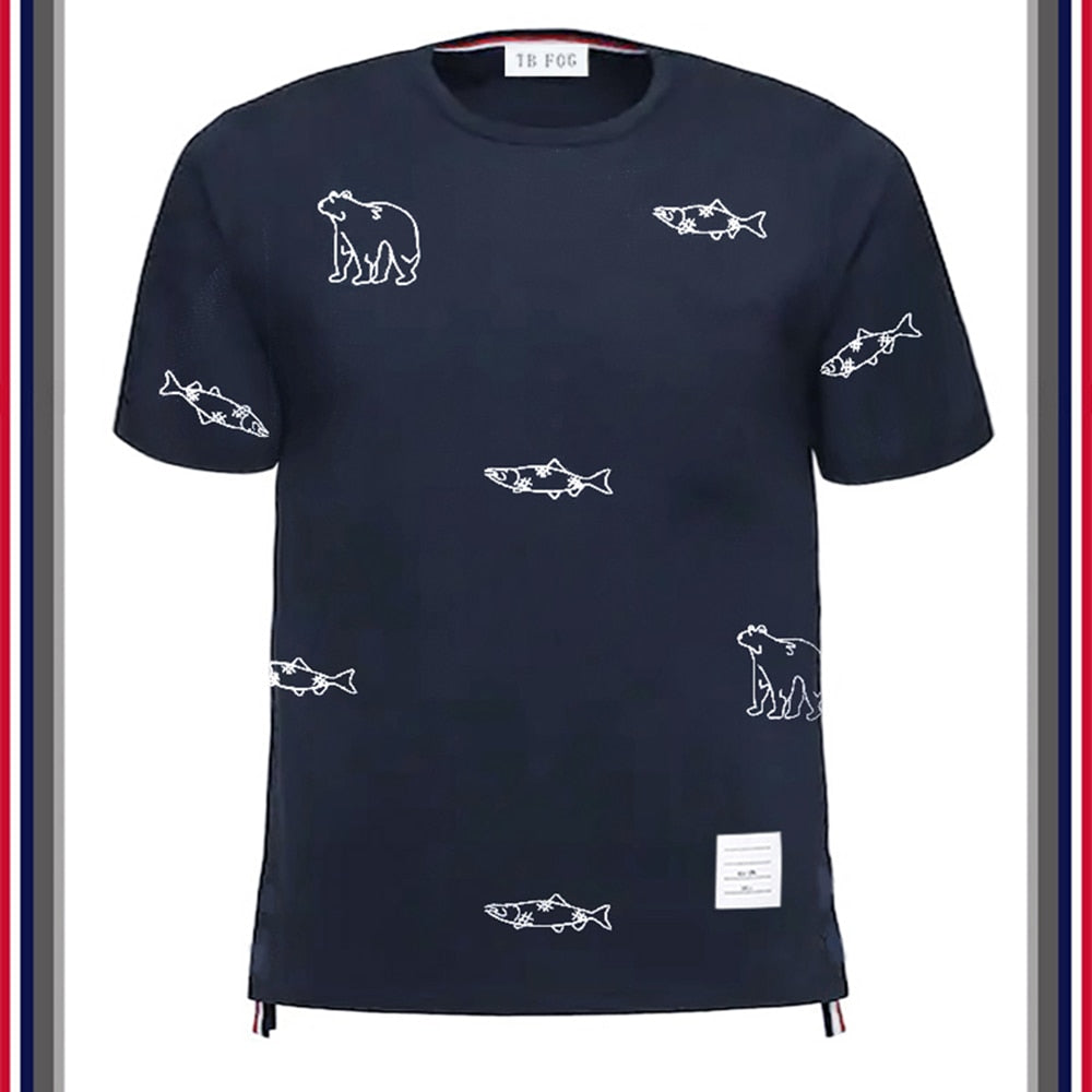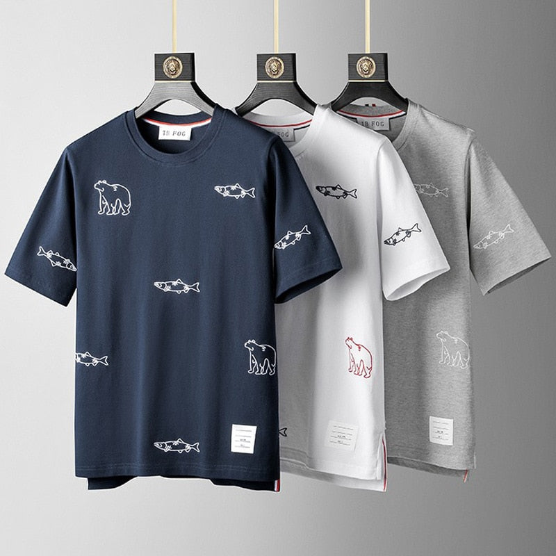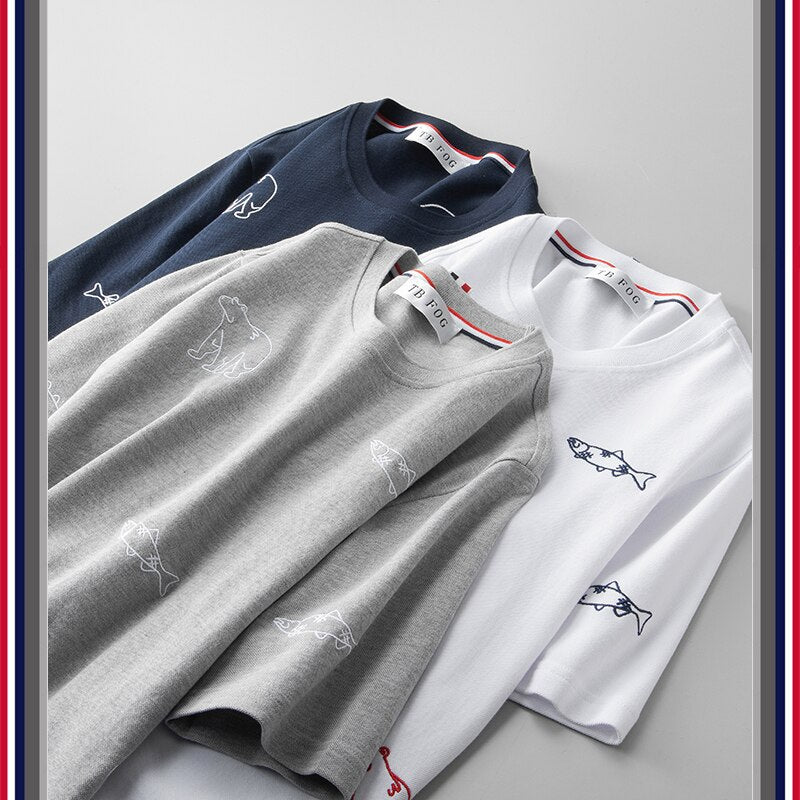 Round neck short-sleeved, half-sleeve four-bar men's striped cotton casual T-Shirt trend couple summer wear