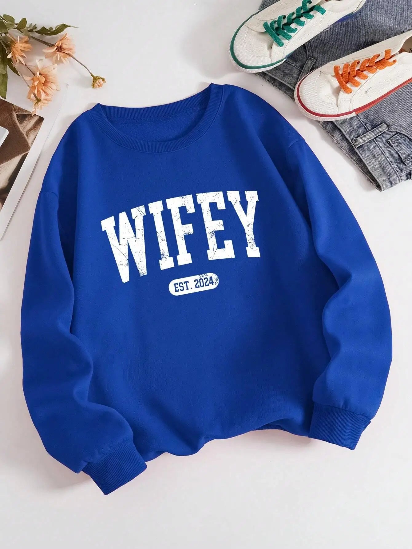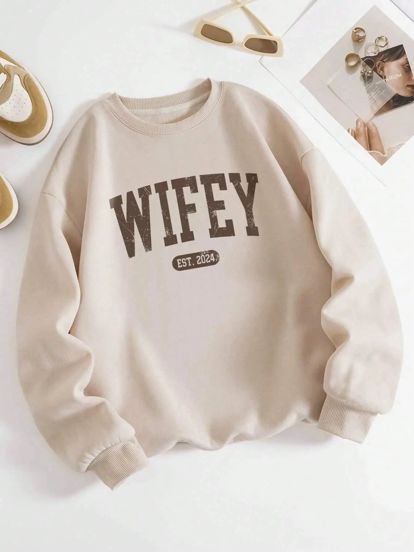 Street Casual Women’s Wifey Fleece Pullover Sweatshirt - Loose Fit, Soft Crewneck”
