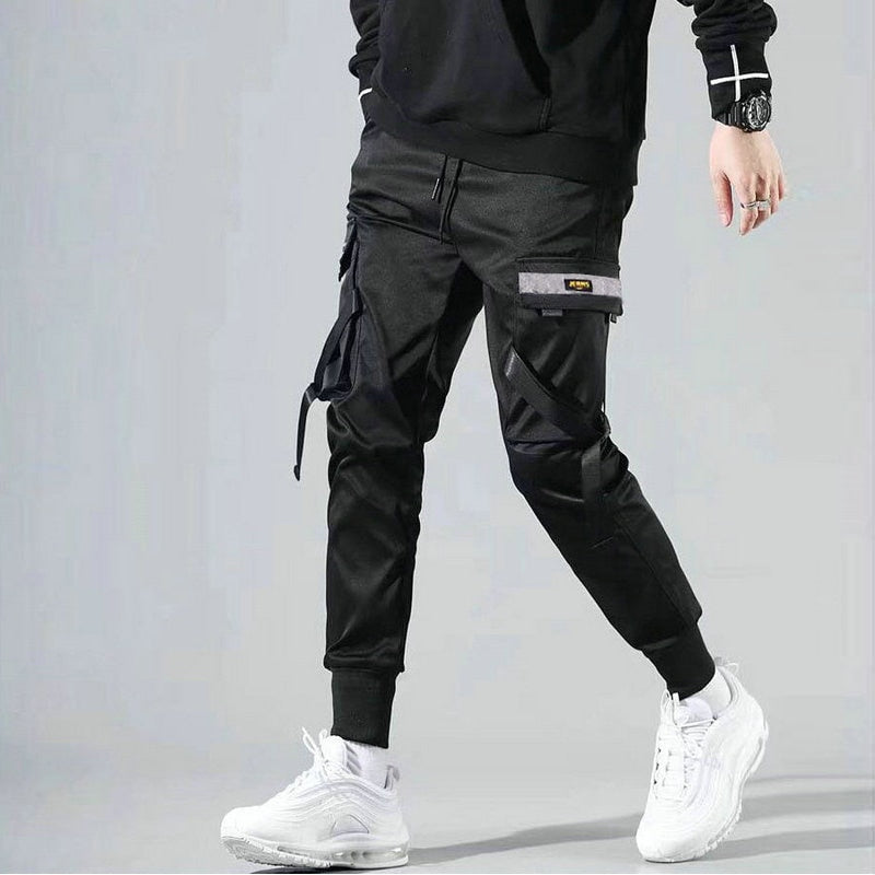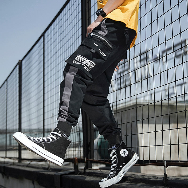Streetwear Casual Pants Cotton Harem Ribbons Patchwork Fashion Ankle Length Jogger Pants For men