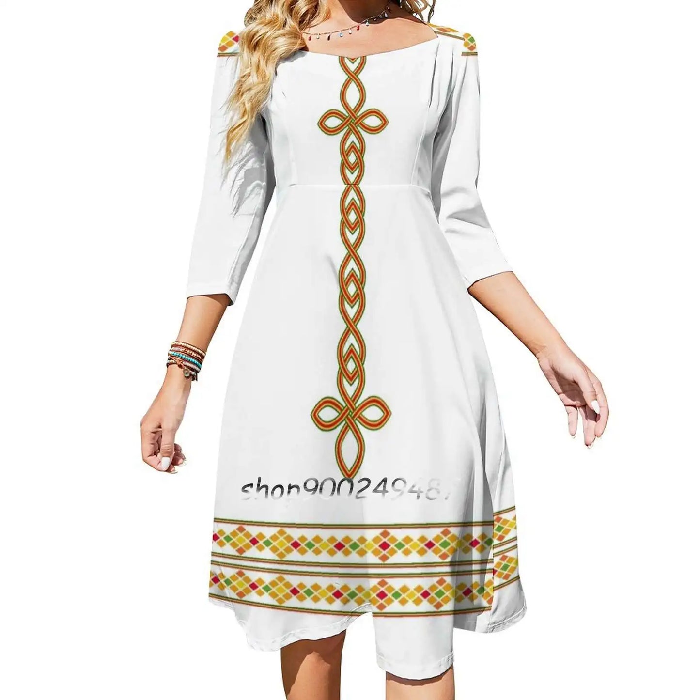 Get ready to turn heads with this stunning new addition to your wardrobe. The Tibeb Sweet Summer Casual dress is the perfect blend of traditional Ethiopian style and modern fashion.