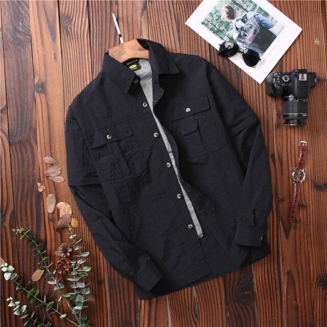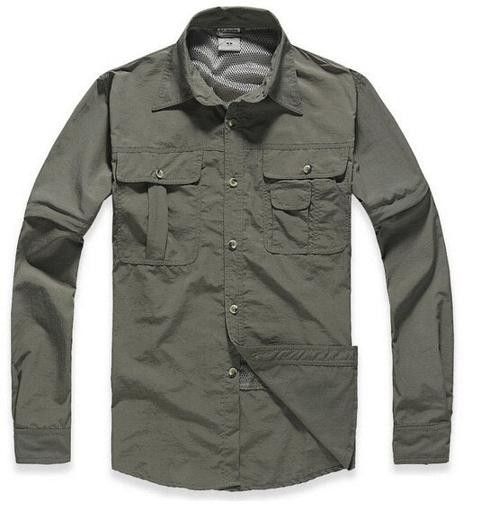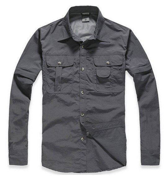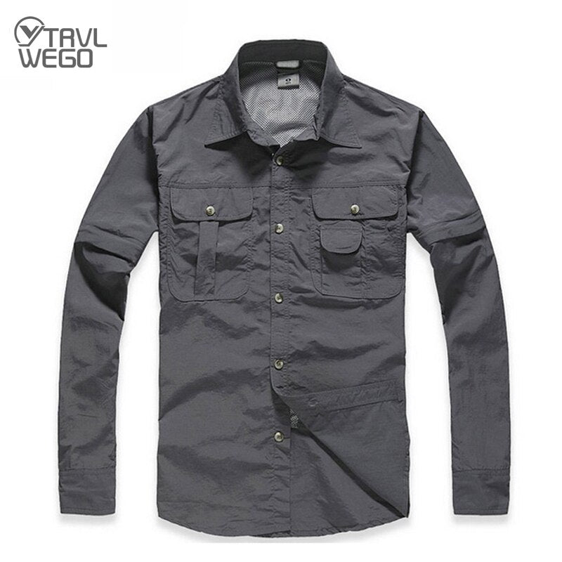 TRVLWEGO Camping Shirt Spring Man Summer Travel Hiking Blouse Breathable&Anti UV Quick-dry Fishing Shirts Detachable Outdoor