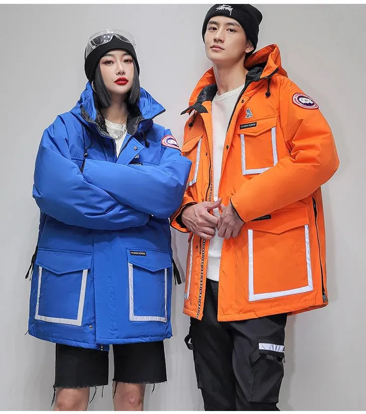 Don't settle for a basic winter coat, choose the Winter Men's Polyester 90% Goose Duck Hooded Parka Coats Casual Loose Down Jacket for a one-of-a-kind look.