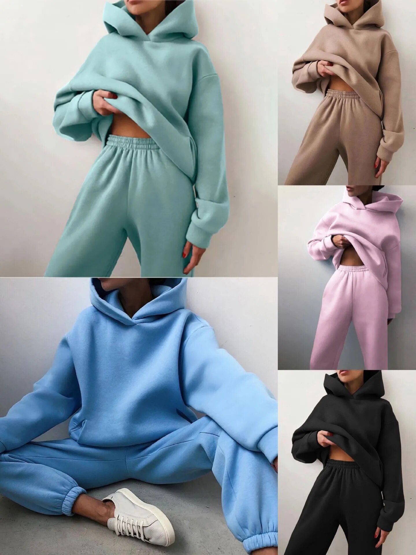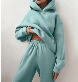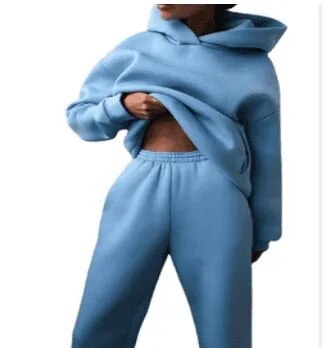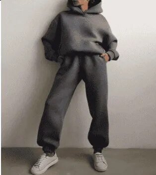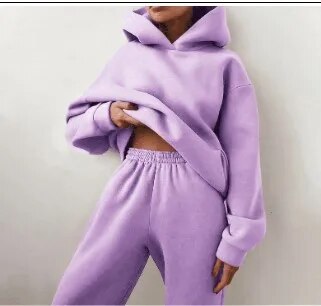 Winter Two Piece Sets Women Tracksuit Oversized Sweatshirt Solid Hoodie Sportswear for Women