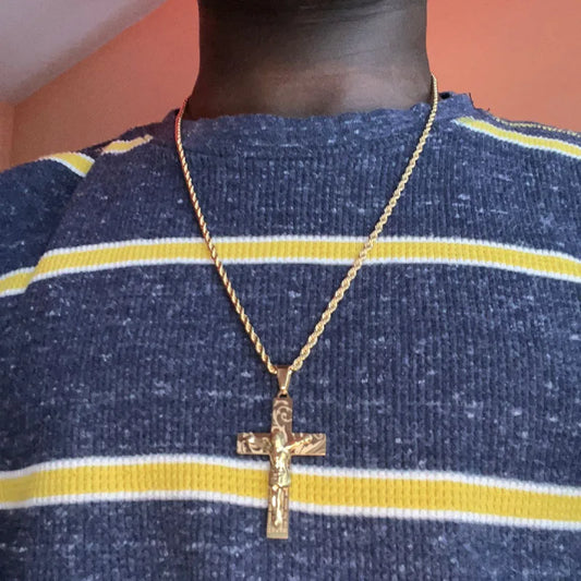Hip Hop Christian Cross Stainless Steel Gold Color Long Necklace for Women/Men