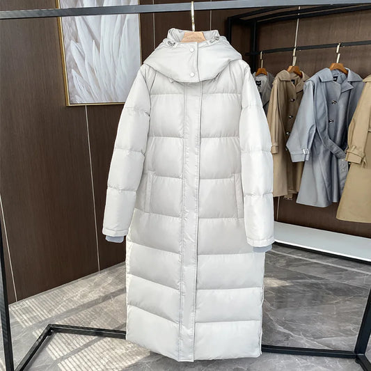 High-Quality White Duck Down Hoodie Long Overcoat Fashion Super Thicken Warm Jacket for Women