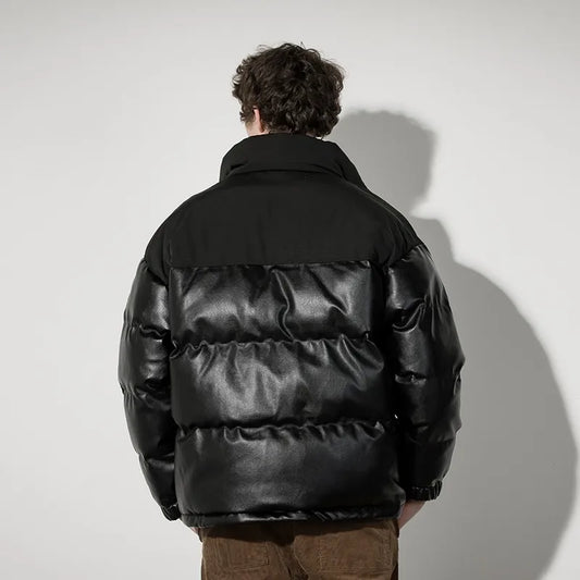 Hip Hop Leather Padded Jacket New Korean trendy Warm Stand Collar Puffer Fashion Jackets for men