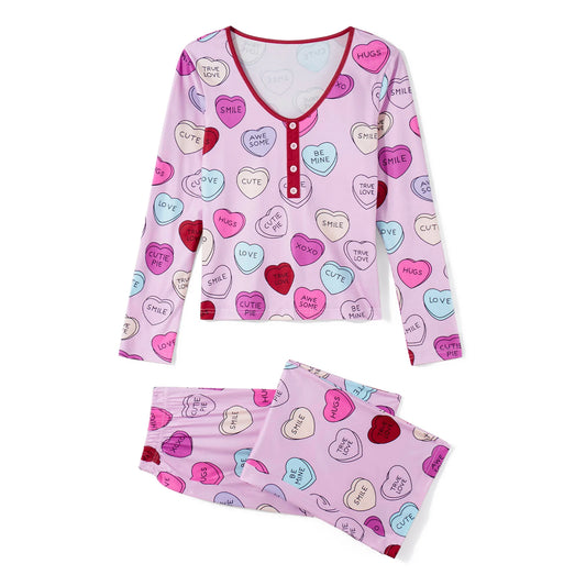 Mommy and Me Matching Valentine’s Pajama Set with Heart Print