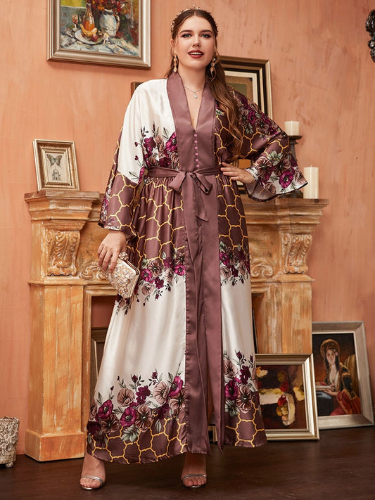 Abayas Dubai Long Sleeves Printed Floral Robe Arabic Turkey Islam Caftan Dress for Women
