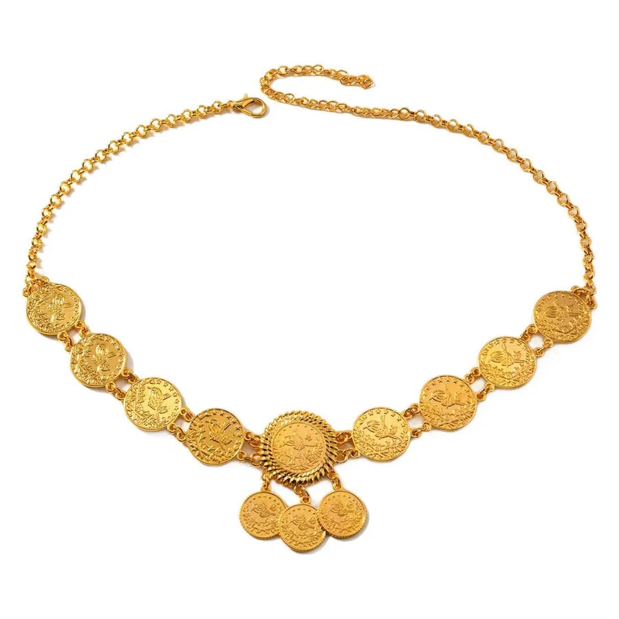 Gold Coin Tassel Hairband With Carved Flowers Middle East Arab Style Wedding Bride Photography Props Fashionable Headwear