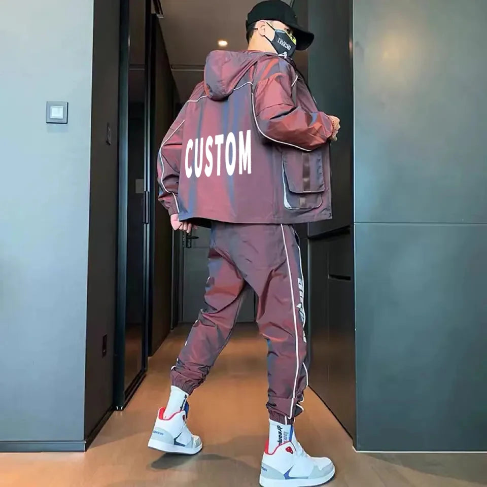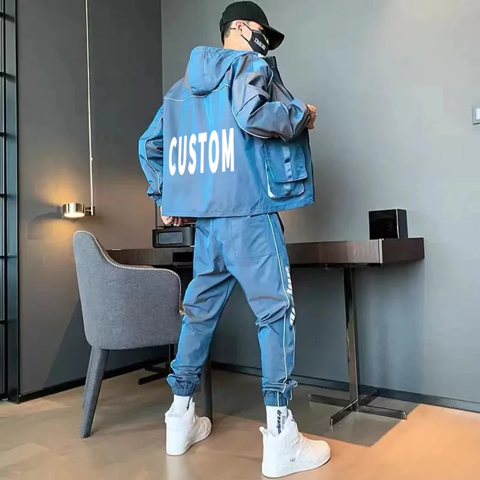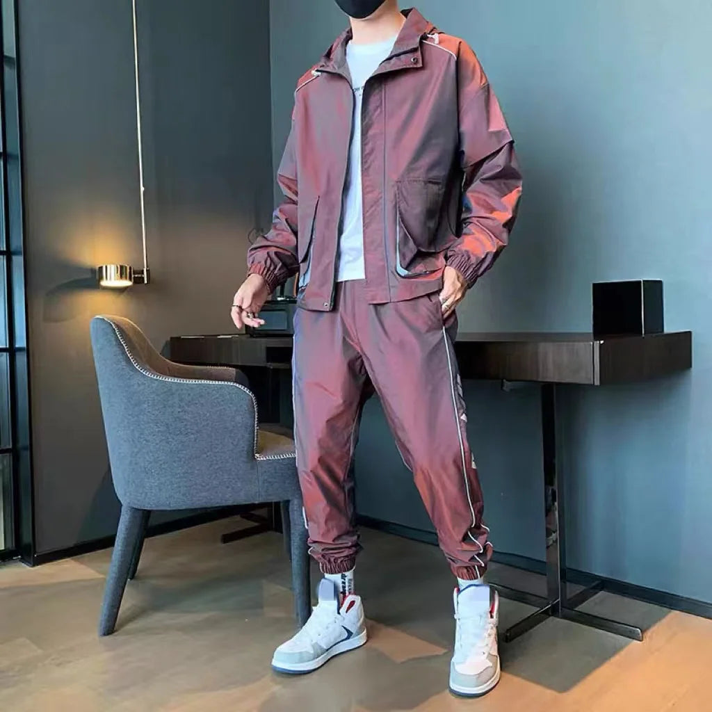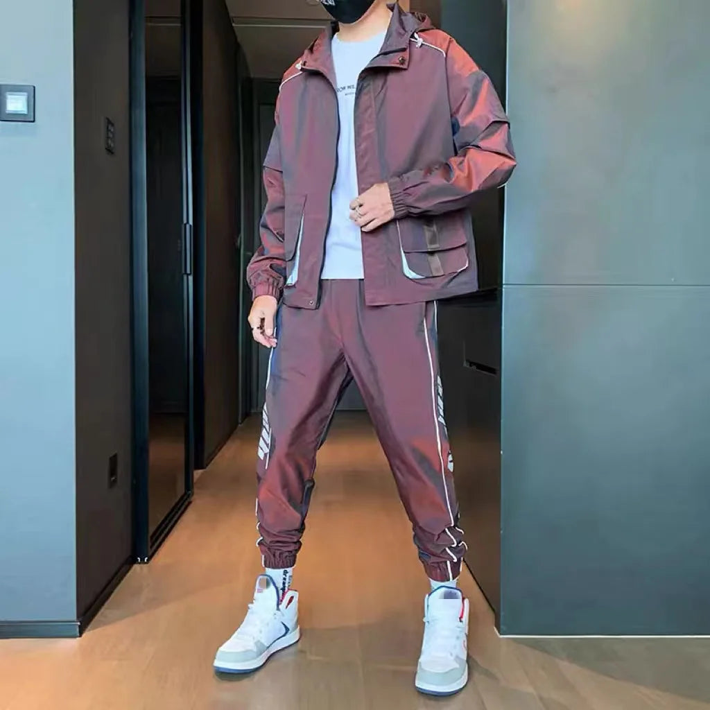 Men's casual Fashion tracksuit jacket and pants two piece set