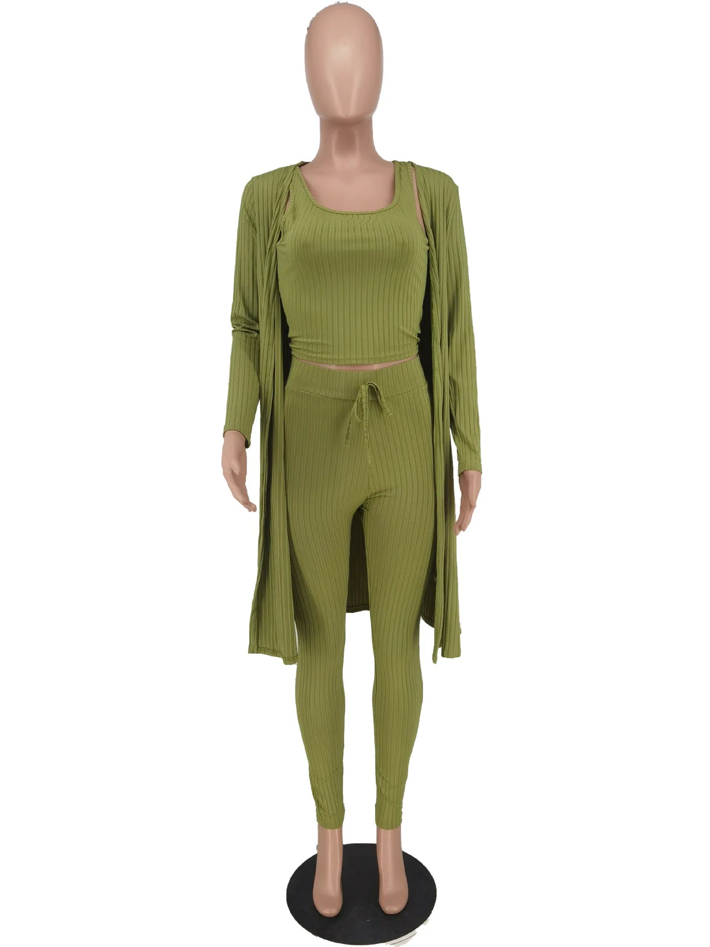 Trending new arrivals Women's Sets Spring Summer Solid Color 3 Pcs set Long Cardigan