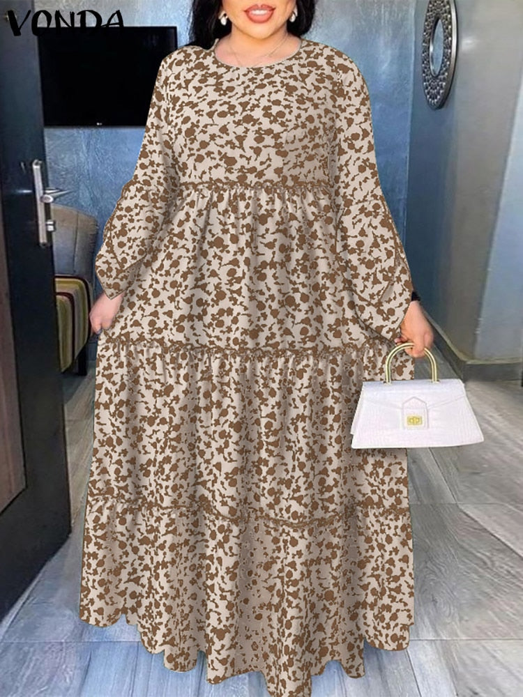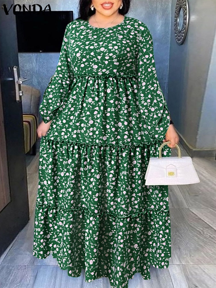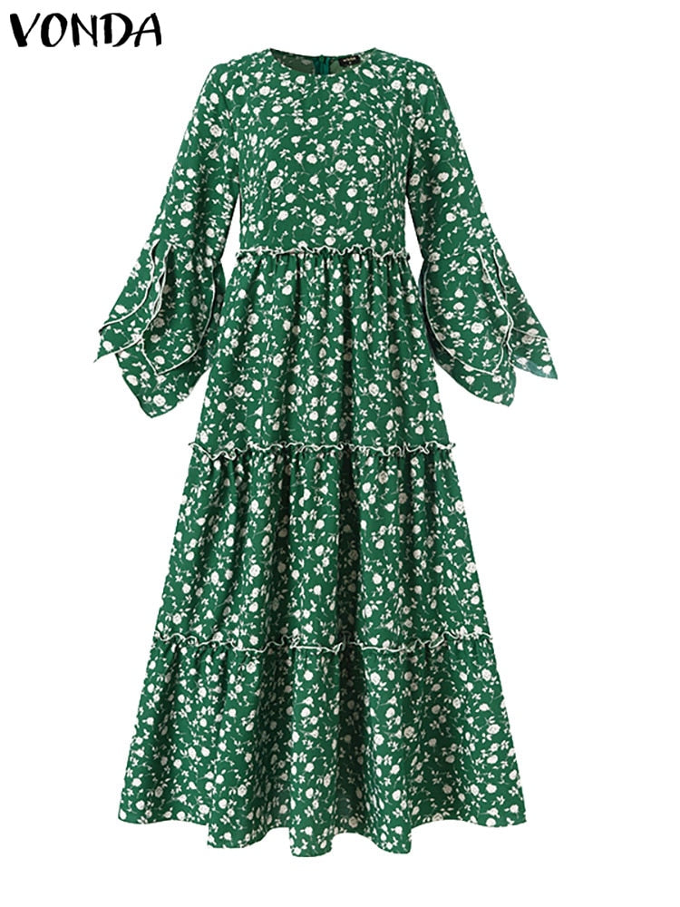 VONDA Bohemian Maxi Women Casual dress Long Flare Sleeve Floral Printed Loose A-Line Dress